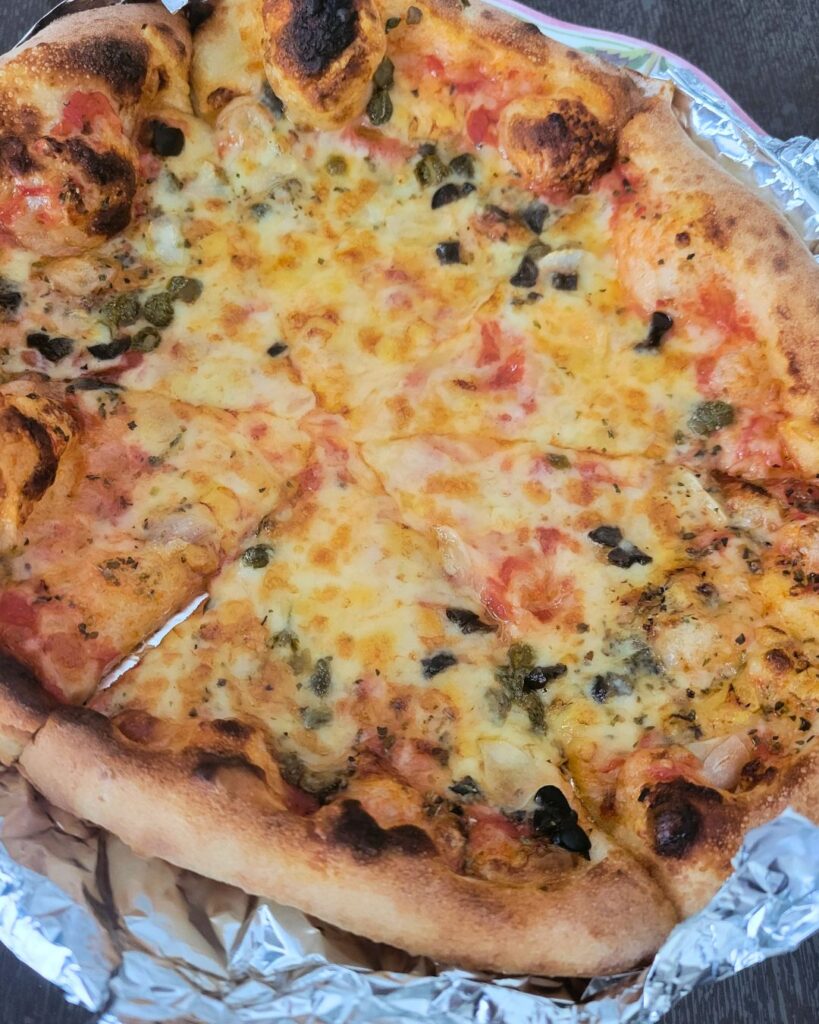 (トマトソース・アンチョビ・ニンニク・オリーブ・ケッパー・オレガノ・モッツァレラ・パルミジャーノ)